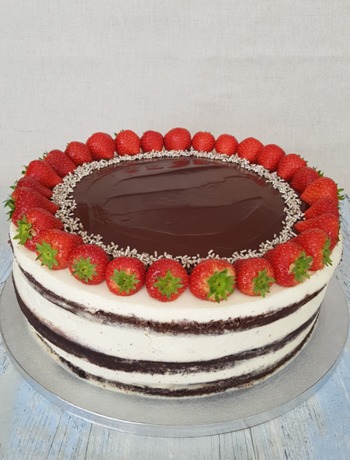 Narodeninová torta z pivného cesta s jahodami, mascarpone, bielou a tmavou čokoládou