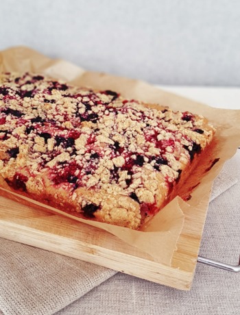 Celozrnný koláč s tvarohom a čiernymi ríbezľami