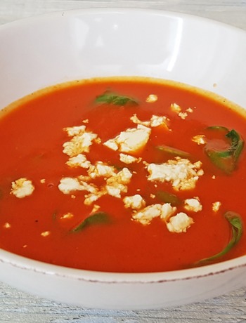 Paradajková polievka trochu inak. Ochutená fetou a špenátom. Zdravá a chutná polievka.