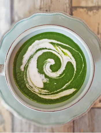 Výživná, sýta a zdravá polievka zo zemiakov, topinamburu, póru, šalátu a vajíčka. Chuť polievke dodali bylinky a aromatické korenia.