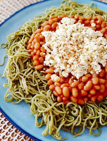 Zdravé bezlepkové cestoviny z cíceru. Cícerové cestoviny so špenátovým pestom.