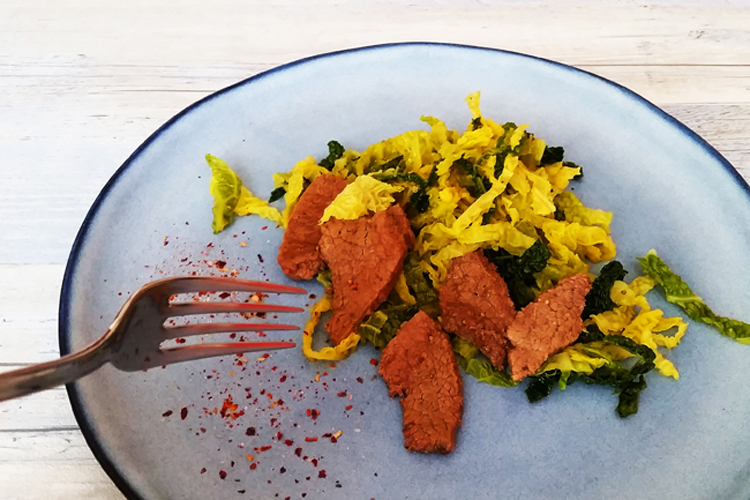 Kelové rezance s kmínom, kurkumou a jemnou hovädzinkou