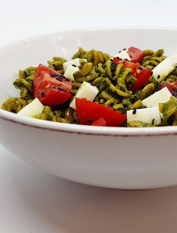 Zdravé bezlepkové cestoviny z cíceru. Cícerové cestoviny so špenátovým pestom.
