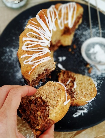 Zdravá bábovka s pridanou bielkovinou s perníkovým korením. Vláčna, dvojfarebná a jednoduchá bábovka.