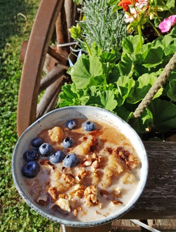 Krupicová kaša v zdravšej verzii, so špaldovej múky, škorice a s maslom Ghee.