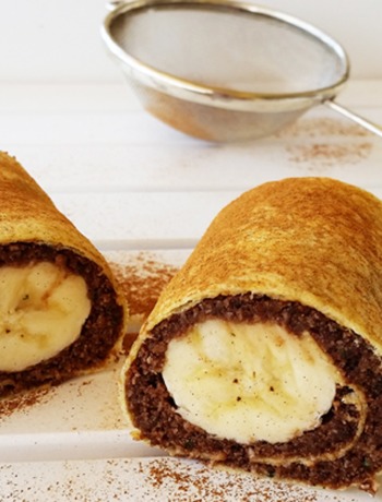 Čokoládová roláda plnená banánom s použitím lavaša. Rýchla a zdravá raňajková pochúťka.